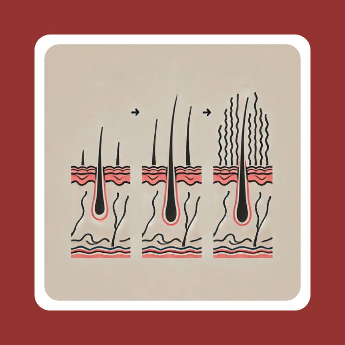 Door deze fase te verlengen, blijft jouw haar langer groeien en wordt het voller voordat het in de rustfase gaat. Klinische studies bevestigen dat Minoxidil de anagene fase verlengt, wat bijdraagt aan een toename van haardichtheid en het vertragen van haarverlies.